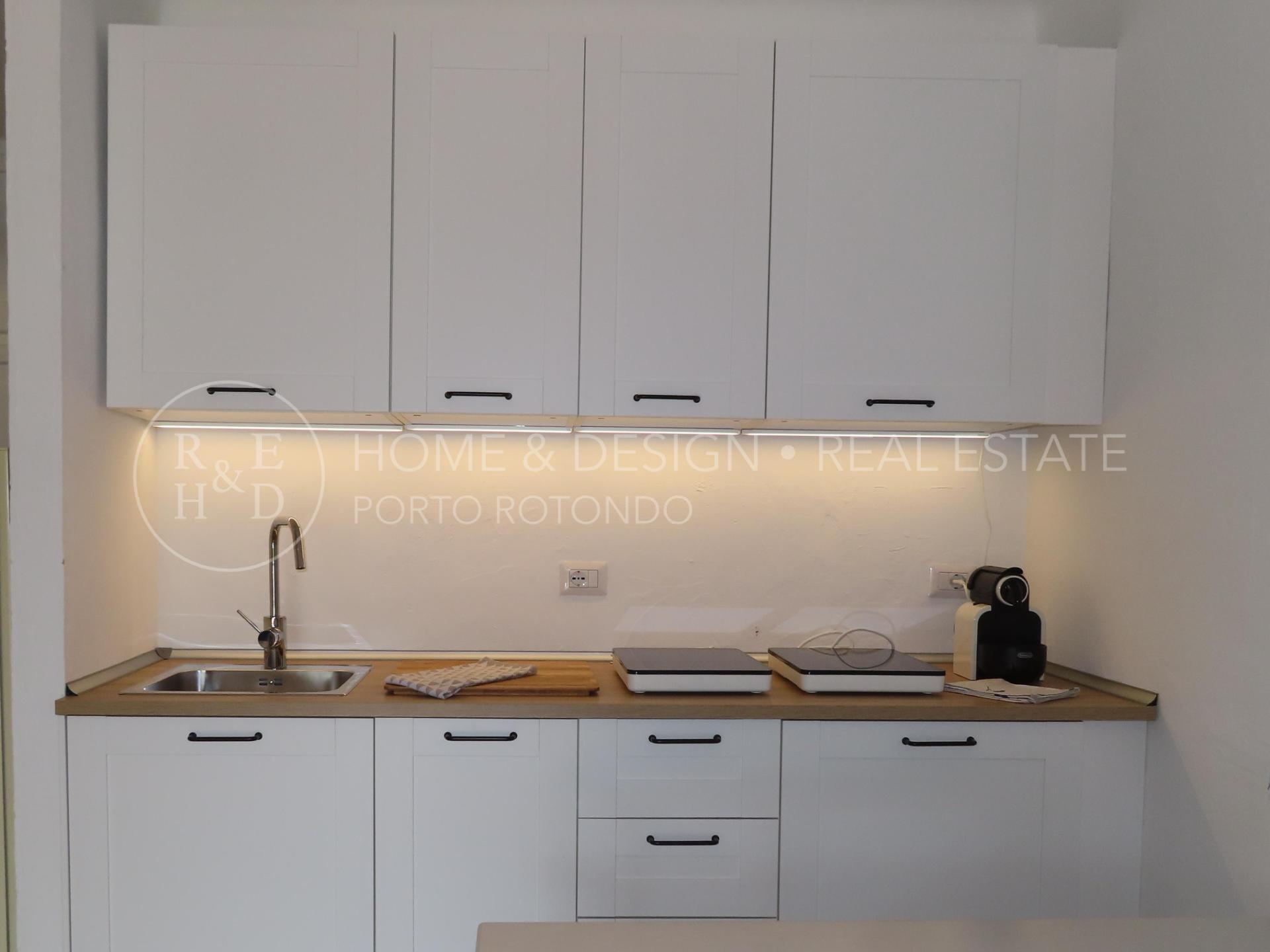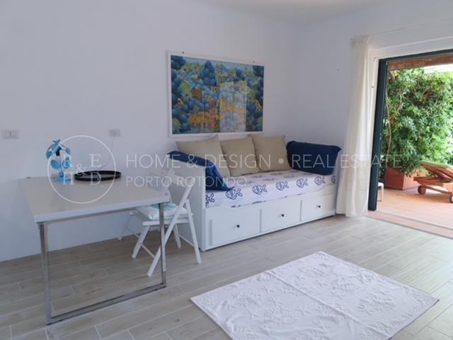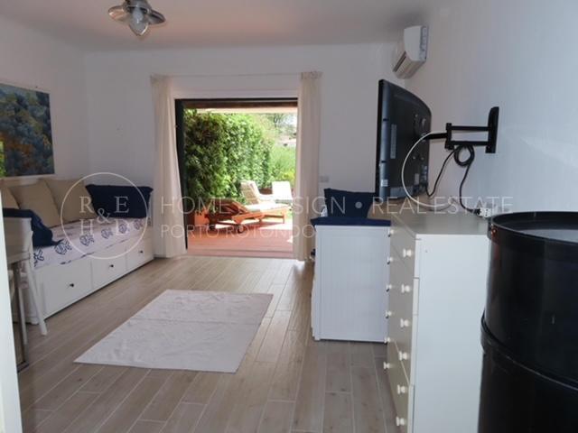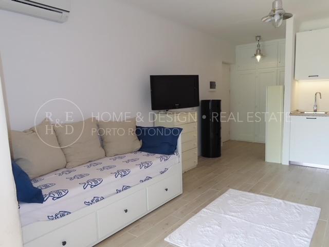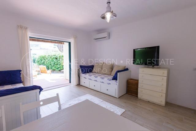 Monolocale sul porto disponibile per brevi periodi di locazione, l'appartamento è posto al piano terra del condominio a schiera con affaccio sul porto e sulla passeggiata circondata da ristoranti e dalle numerose boutiques. Composto da area giorno con angolo cottura a vista, area notte composta da due sofà singoli, un bagno completo con doccia. Completa la proprietà la veranda con giardino vista mare