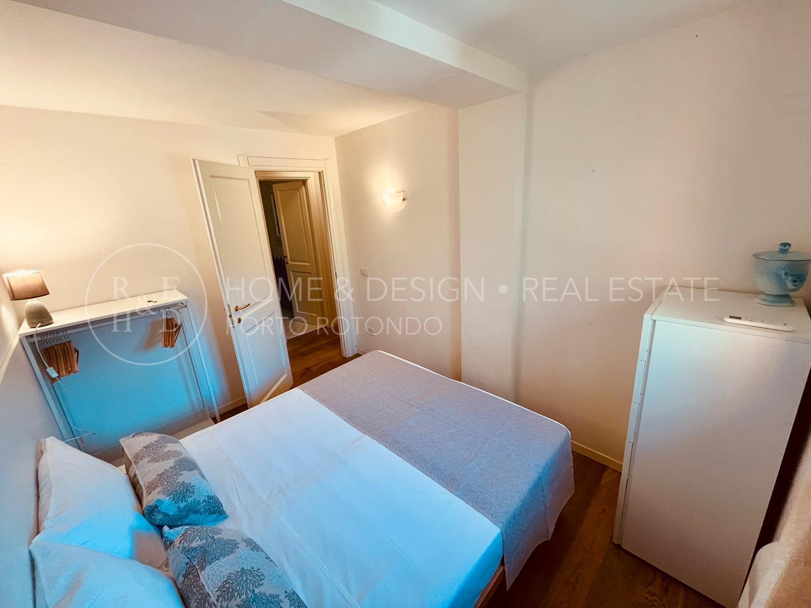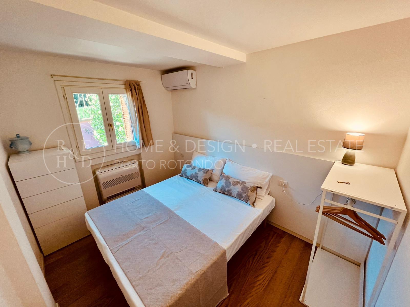 Porto Rotondo, appartamento in locazione presso La Residenza dei Fiori, la villa strutturata in pietra sarda a vista è in posizione privilegiata data la vicinanza al centro del paese e dista circa 800 Mt dalla prima spiaggia. La proprietà in oggetto è posta al piano terra della struttura residenziale che è suddivisa in 12 unità immobiliari. L'appartamento di tipologia trilocale si compone di un soggiorno con angolo cottura a vista; una camera da letto matrimoniale; una seconda camera matrimoniale, due bagni con doccia, giardino privato. L'immobile si presenta totalmente arredato e corredato, dotato di cucina moderna e completamente attrezzata; lavatrice, lavastoviglie, aria condizionata in ogni ambiente, arredo semplice ma funzionale, buone finiture. L'appartamento è in fase di miglioramento degli arredi interni, esterni e dei corredi. Posto auto scoperto