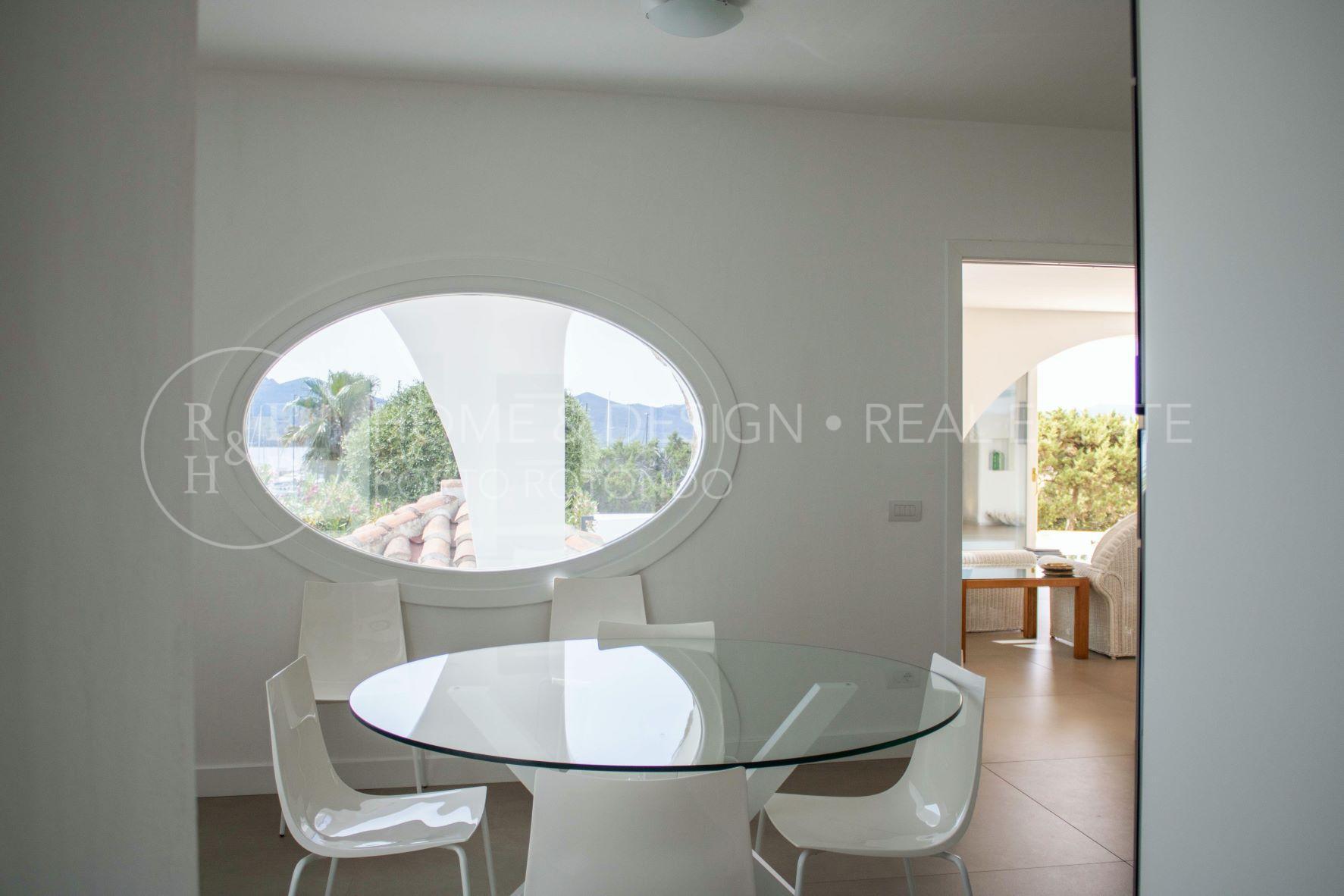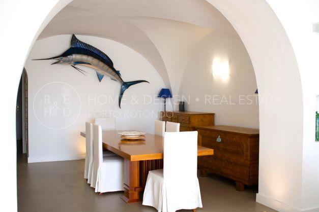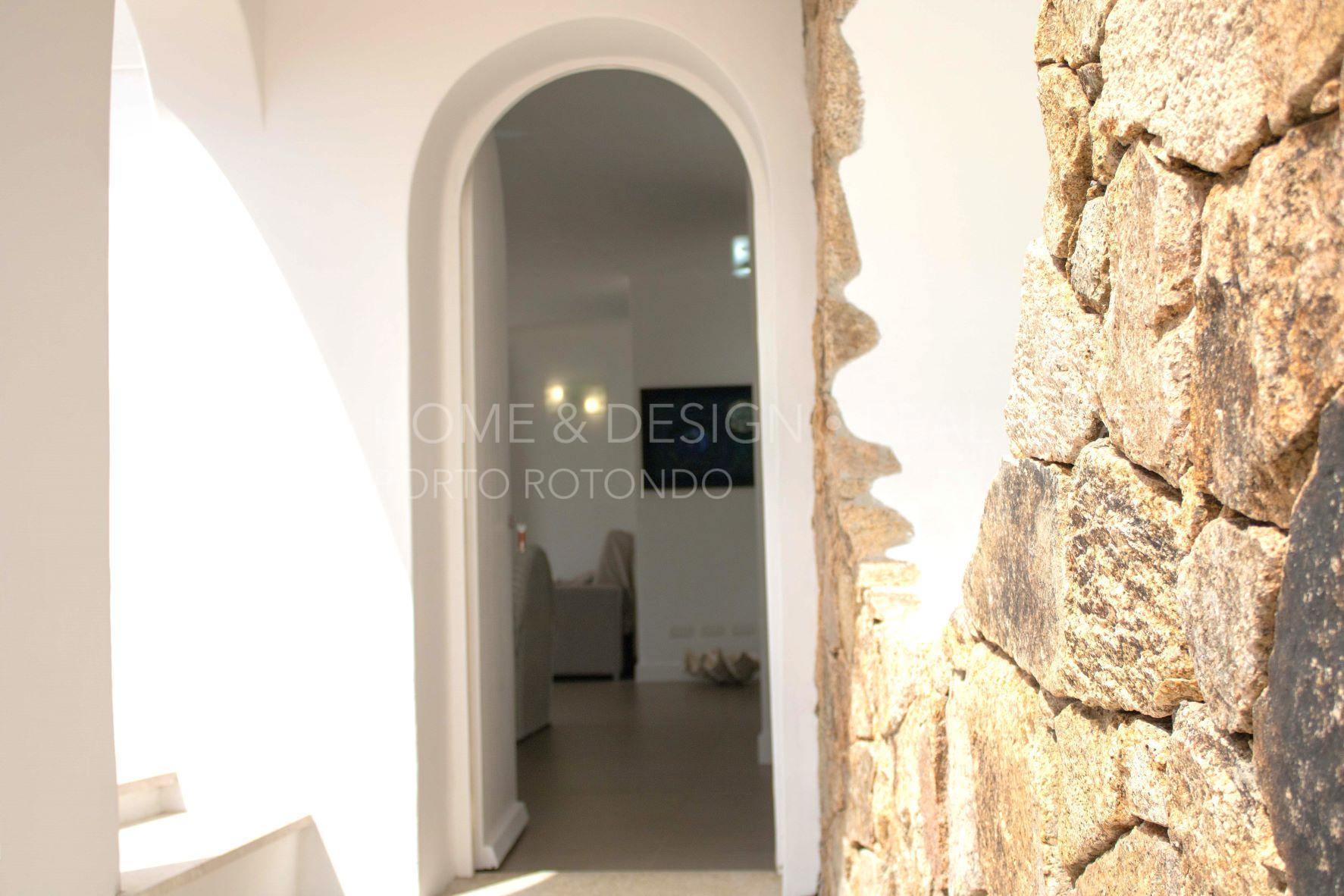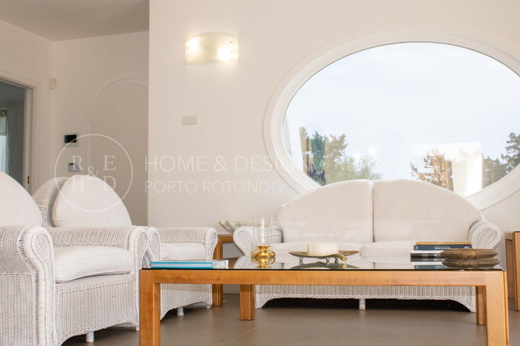 Porto Rotondo, Splendida porzione di villa inserita nel cuore del borgo a pochi passi dal porto ed alle spiagge maggiormente rinomate della zona. La proprietà disponibile per la locazione estiva è disposta su unico livello, terra/tetto e libera su tre lati, risulta composta al piano d'ingresso da living con zona pranzo ed area relax, cucina abitabile dotata di ogni elettrodomestico, quattro camere da letto di cui due camere matrimoniali con bagno en suite, una camera tripla ed una camera doppia di servizio con bagno privato, il quarto bagno dispone di doppio ingresso: area giorno e camera. Verande arredate e corredate, vasca jacuzzi, solarium. ingresso di servizio. Aria condizionata in ogni ambiente. Posto auto in autorimessa.