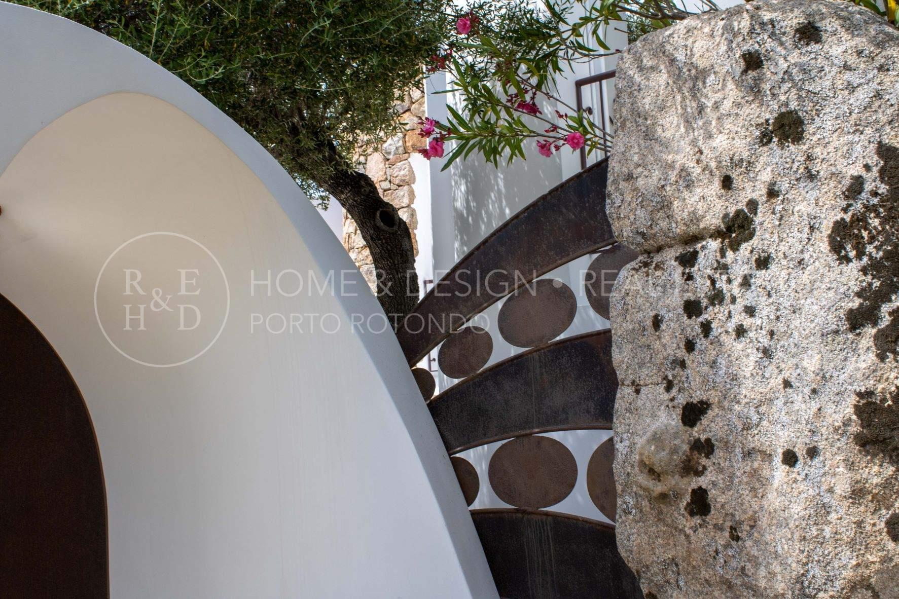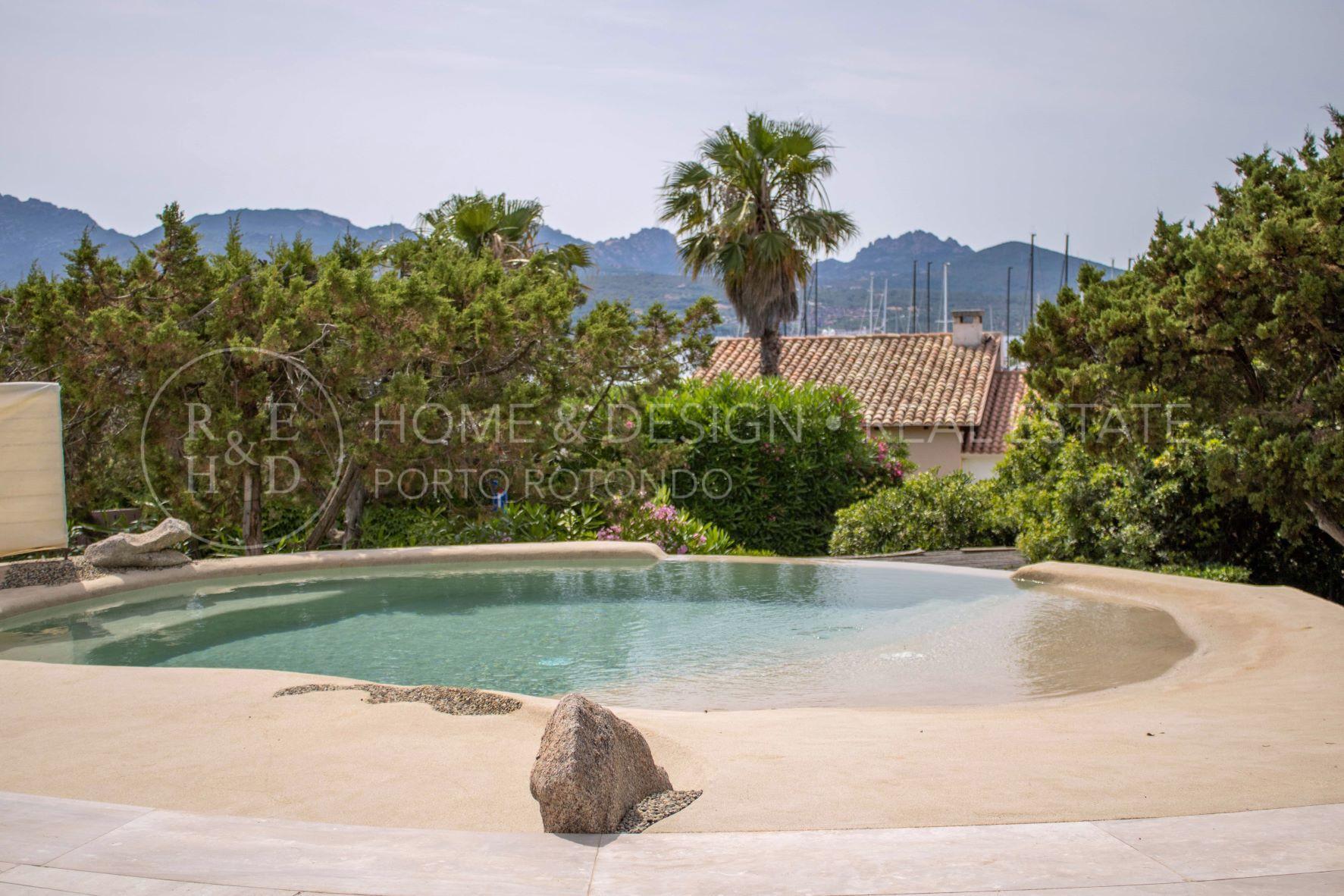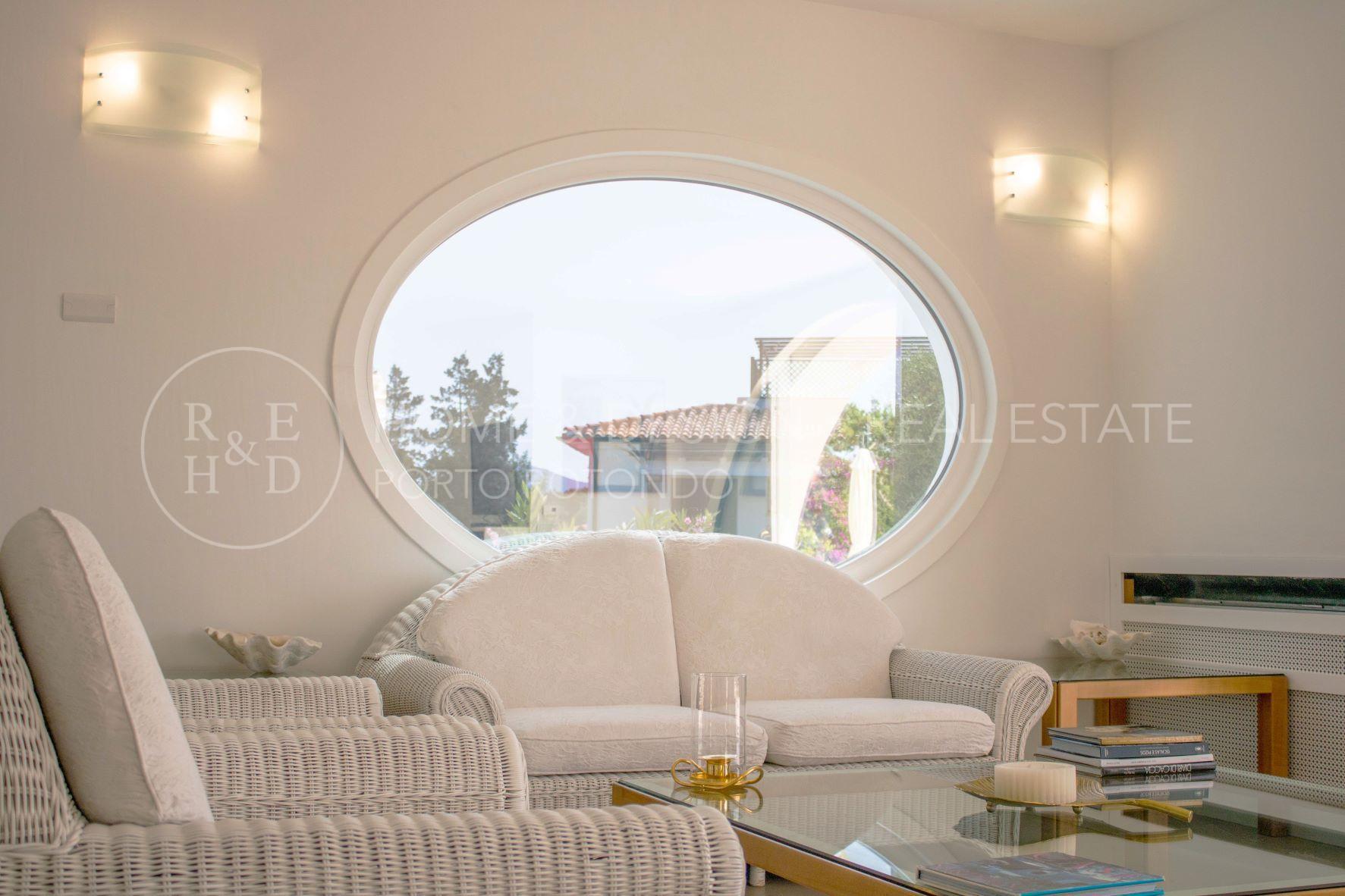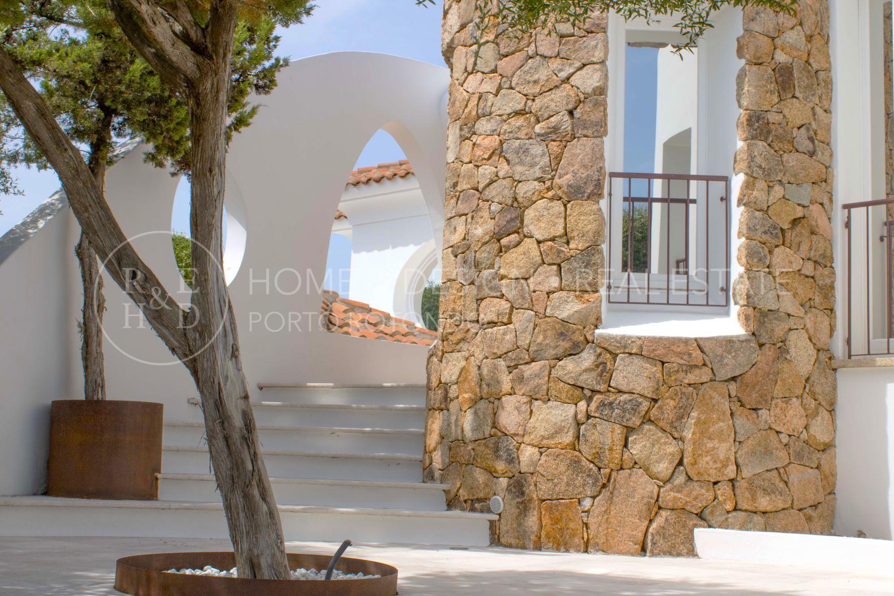 Porto Rotondo, Splendida porzione di villa inserita nel cuore del borgo a pochi passi dal porto ed alle spiagge maggiormente rinomate della zona. La proprietà disponibile per la locazione estiva è disposta su unico livello, terra/tetto e libera su tre lati, risulta composta al piano d'ingresso da living con zona pranzo ed area relax, cucina abitabile dotata di ogni elettrodomestico, quattro camere da letto di cui due camere matrimoniali con bagno en suite, una camera tripla ed una camera doppia di servizio con bagno privato, il quarto bagno dispone di doppio ingresso: area giorno e camera. Verande arredate e corredate, vasca jacuzzi, solarium. ingresso di servizio. Aria condizionata in ogni ambiente. Posto auto in autorimessa.
