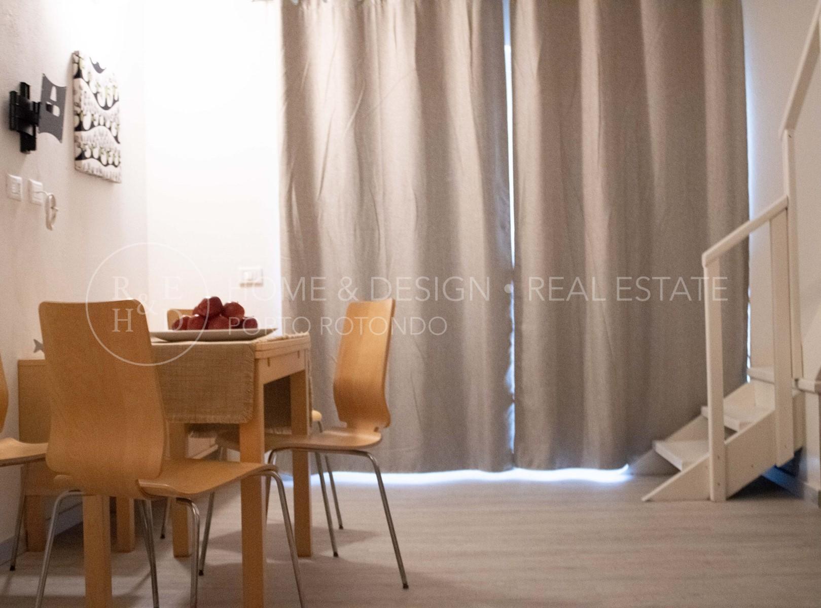 Al piano inferiore, un accogliente soggiorno con zona pranzo si apre su un angolo cottura a vista, completo di tutte le comodità. Un bagno moderno e un balcone abitabile arricchiscono ulteriormente questo livello, offrendo uno spazio esterno da cui godere la tranquilla atmosfera locale. Una comoda scala interna porta alla mansarda, adibita a zona notte, che aggiunge un tocco di intimità all'ambiente.