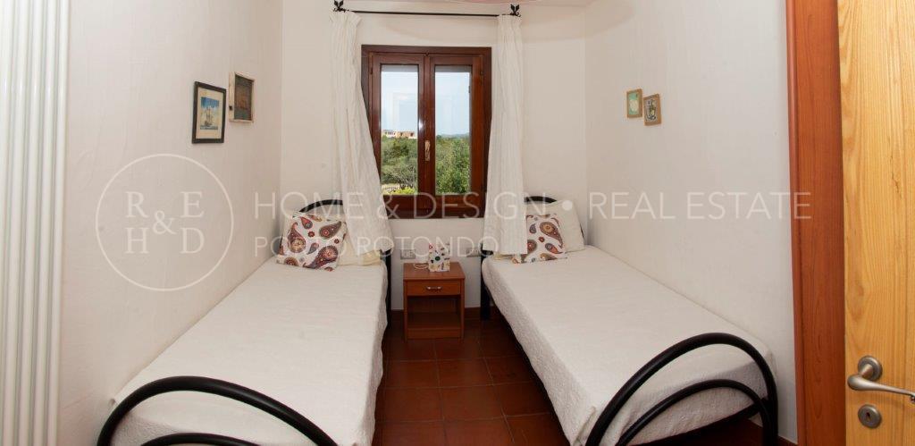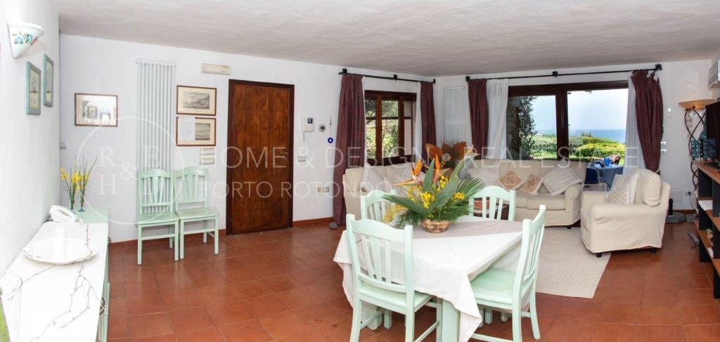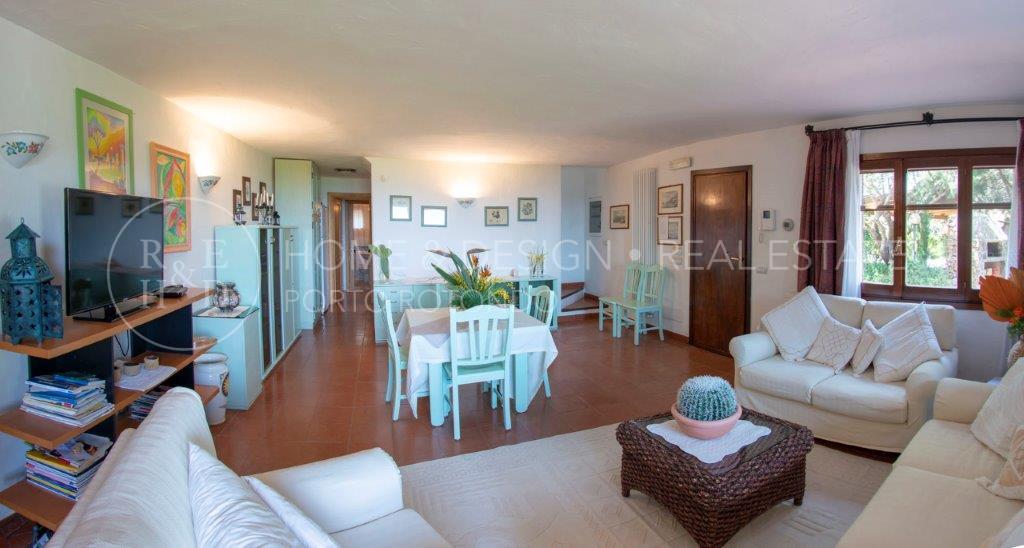 Il Residence è immerso in un incantevole parco che offre una vista spettacolare sull'isolotto di Mortorio. Questo appartamento, con cinque locali, rappresenta un autentico angolo di paradiso distribuito su due piani. Al piano d'ingresso si trova un ampio soggiorno/pranzo, una cucina attrezzata, una camera doppia e un bagno. Al piano superiore, ti accoglie una camera padronale con bagno privato e un balcone che si affaccia sul mare, insieme a una camera doppia, una matrimoniale e un ulteriore bagno, garantendo così il massimo comfort.