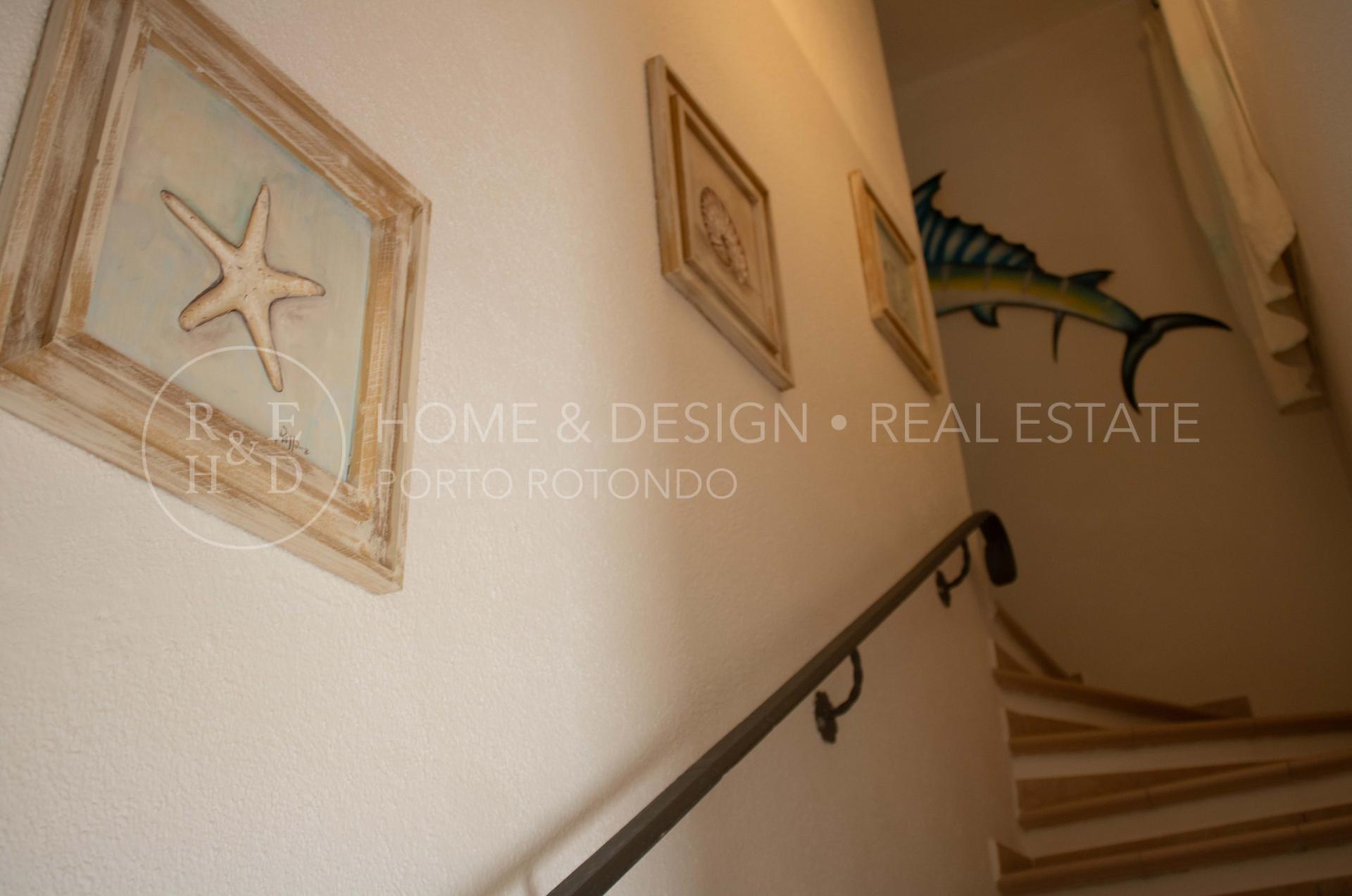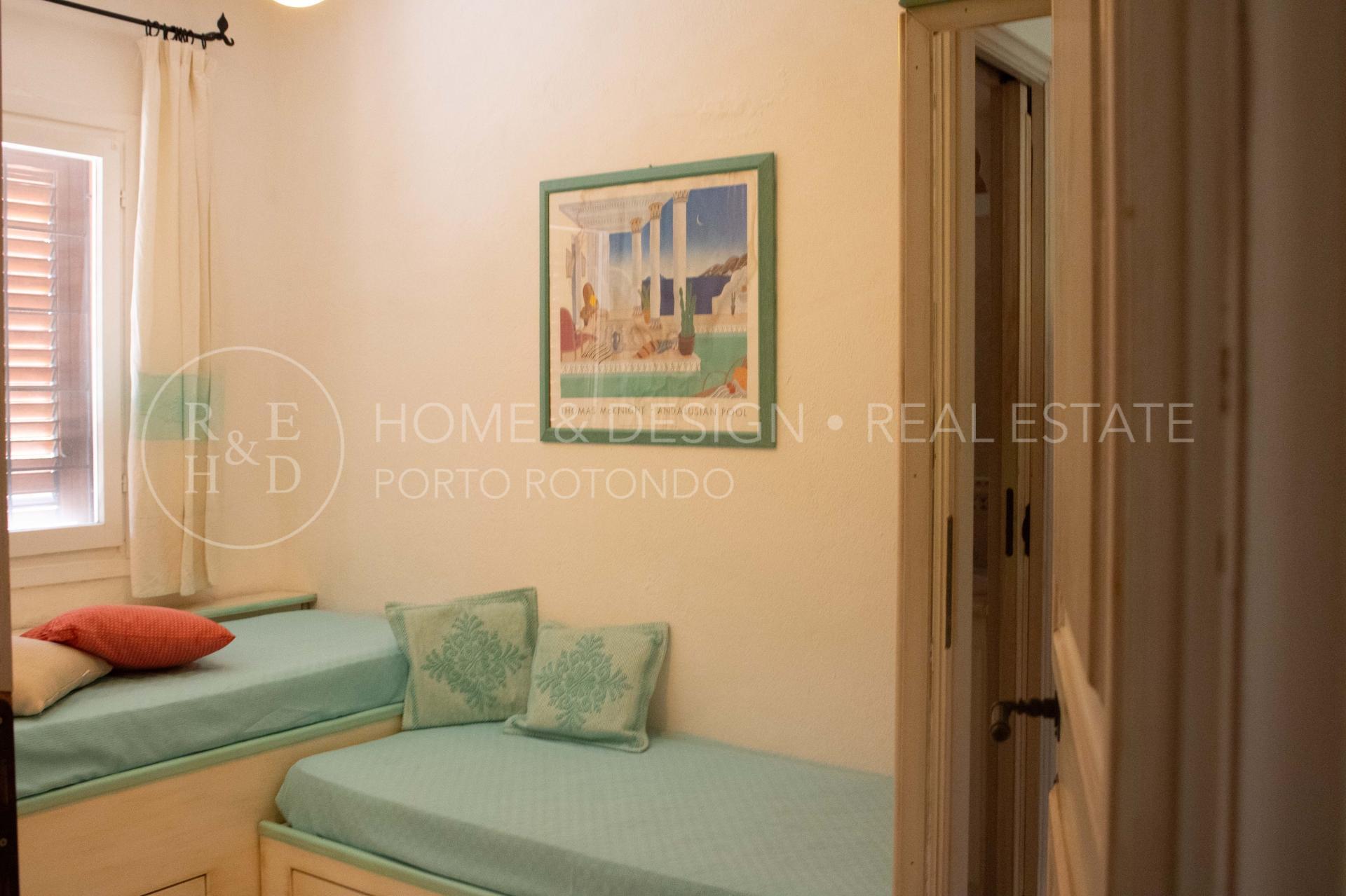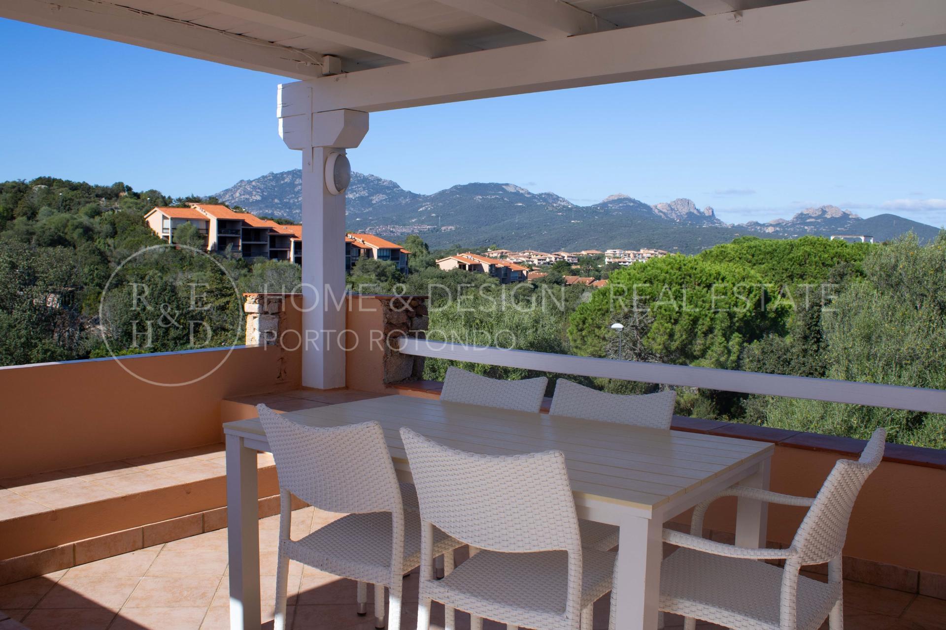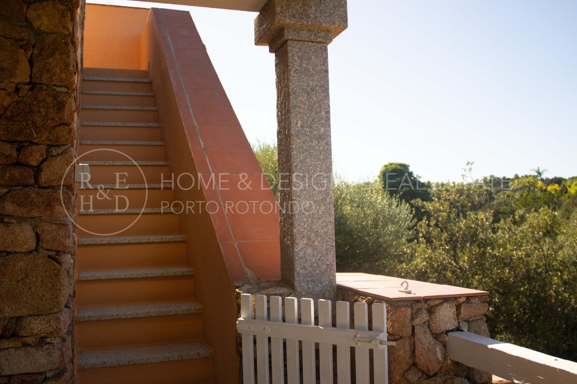 Splendida porzione in villa plurifamiliare inserita nella splendida macchia mediterranea tipica della Gallura, la proprietà dista poche centinaia di metri dal porto turistico e pochi passi al centro del borgo. La villa strutturata in pietra sarda a vista che sorge in posizione panoramica è suddivisa in più unità immobiliari, la particolarità di questa unità è la posizione: di testata, d'angolo, terra/tetto e libera su due lati. La proprietà risulta composta da ingresso con scala d'accesso al piano superiore che ci conduce all' ampio soggiorno con area relax ed angolo cottura a vista, una camera matrimoniale, una camera doppia, due servizi con doccia, terrazza arredata e corredata, solarium arredato. Buon arredo e buone finiture, buona ristrutturazione, per completare la proprietà posto auto scoperto