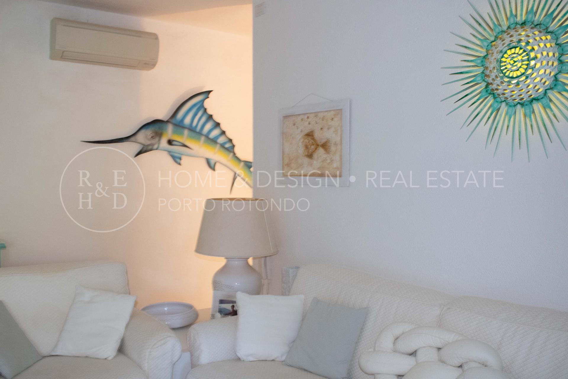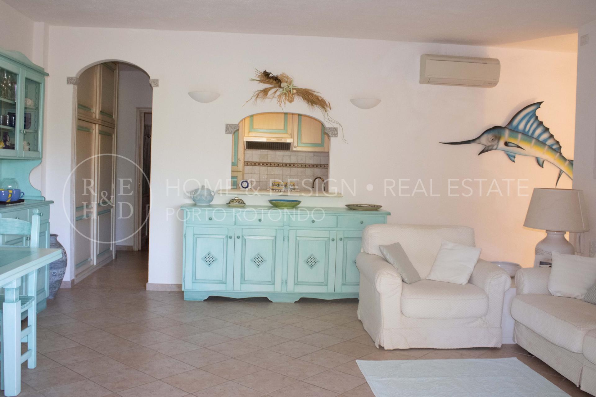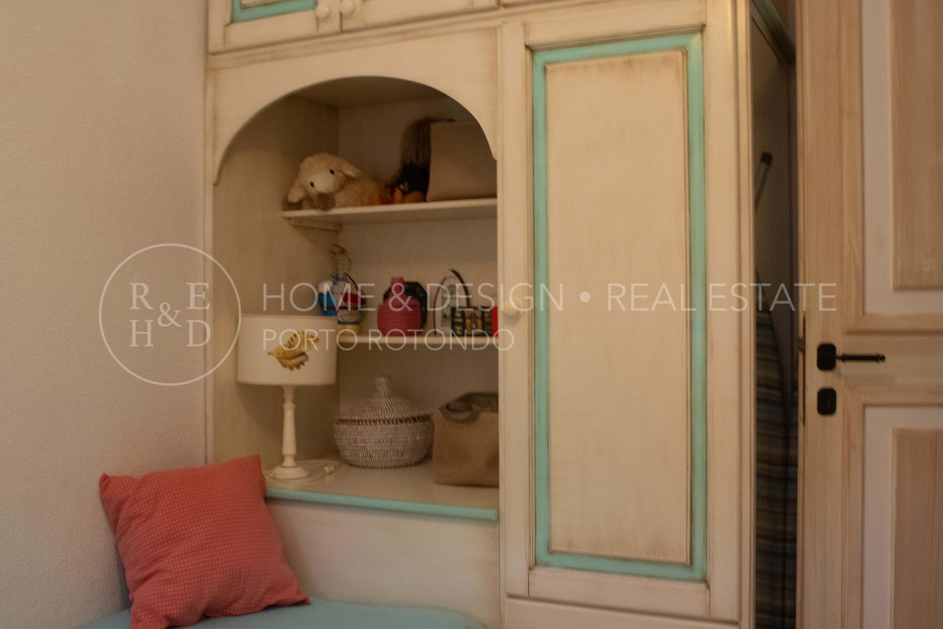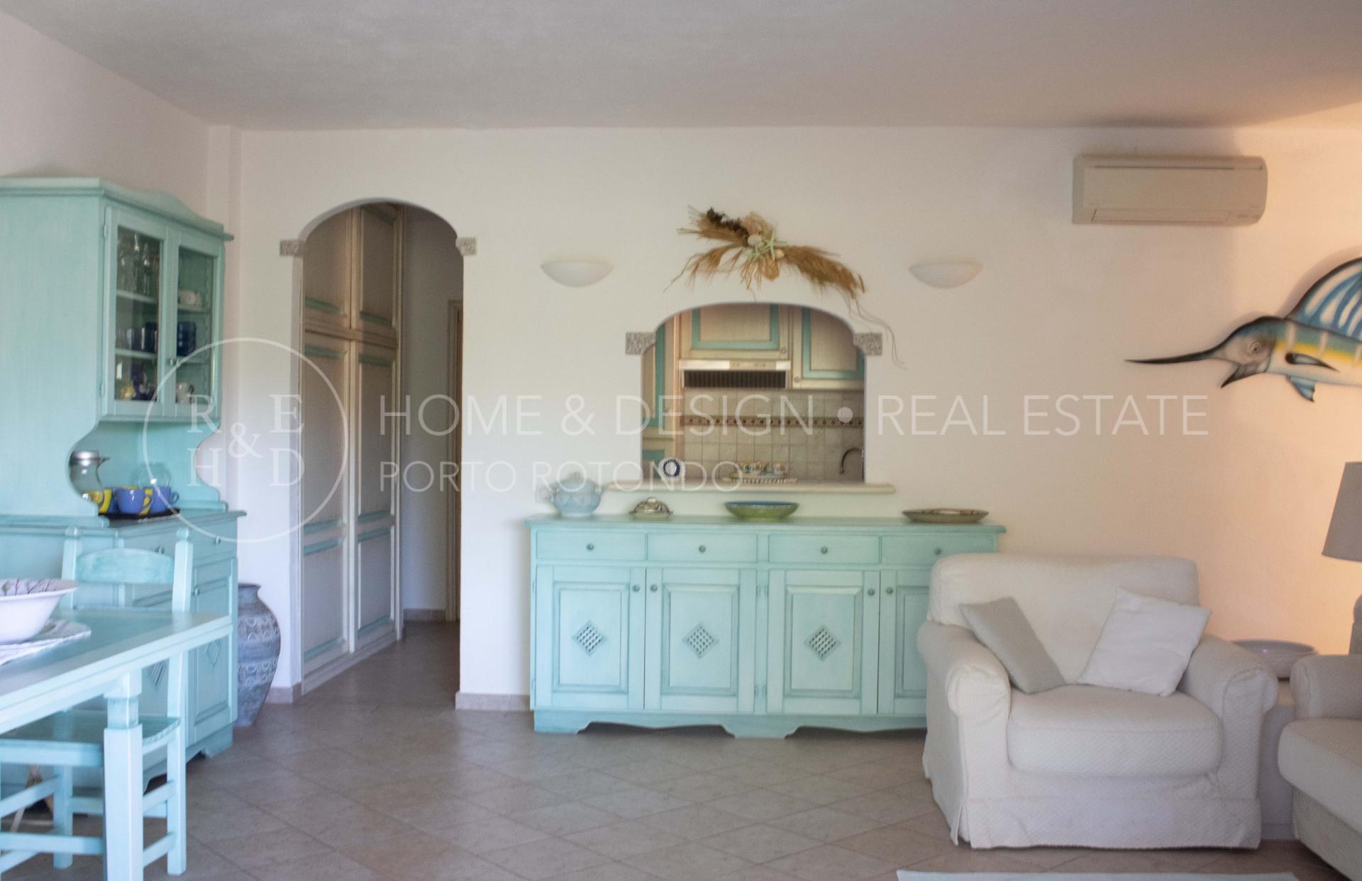 Splendida porzione in villa plurifamiliare inserita nella splendida macchia mediterranea tipica della Gallura, la proprietà dista poche centinaia di metri dal porto turistico e pochi passi al centro del borgo. La villa strutturata in pietra sarda a vista che sorge in posizione panoramica è suddivisa in più unità immobiliari, la particolarità di questa unità è la posizione: di testata, d'angolo, terra/tetto e libera su due lati. La proprietà risulta composta da ingresso con scala d'accesso al piano superiore che ci conduce all' ampio soggiorno con area relax ed angolo cottura a vista, una camera matrimoniale, una camera doppia, due servizi con doccia, terrazza arredata e corredata, solarium arredato. Buon arredo e buone finiture, buona ristrutturazione, per completare la proprietà posto auto scoperto